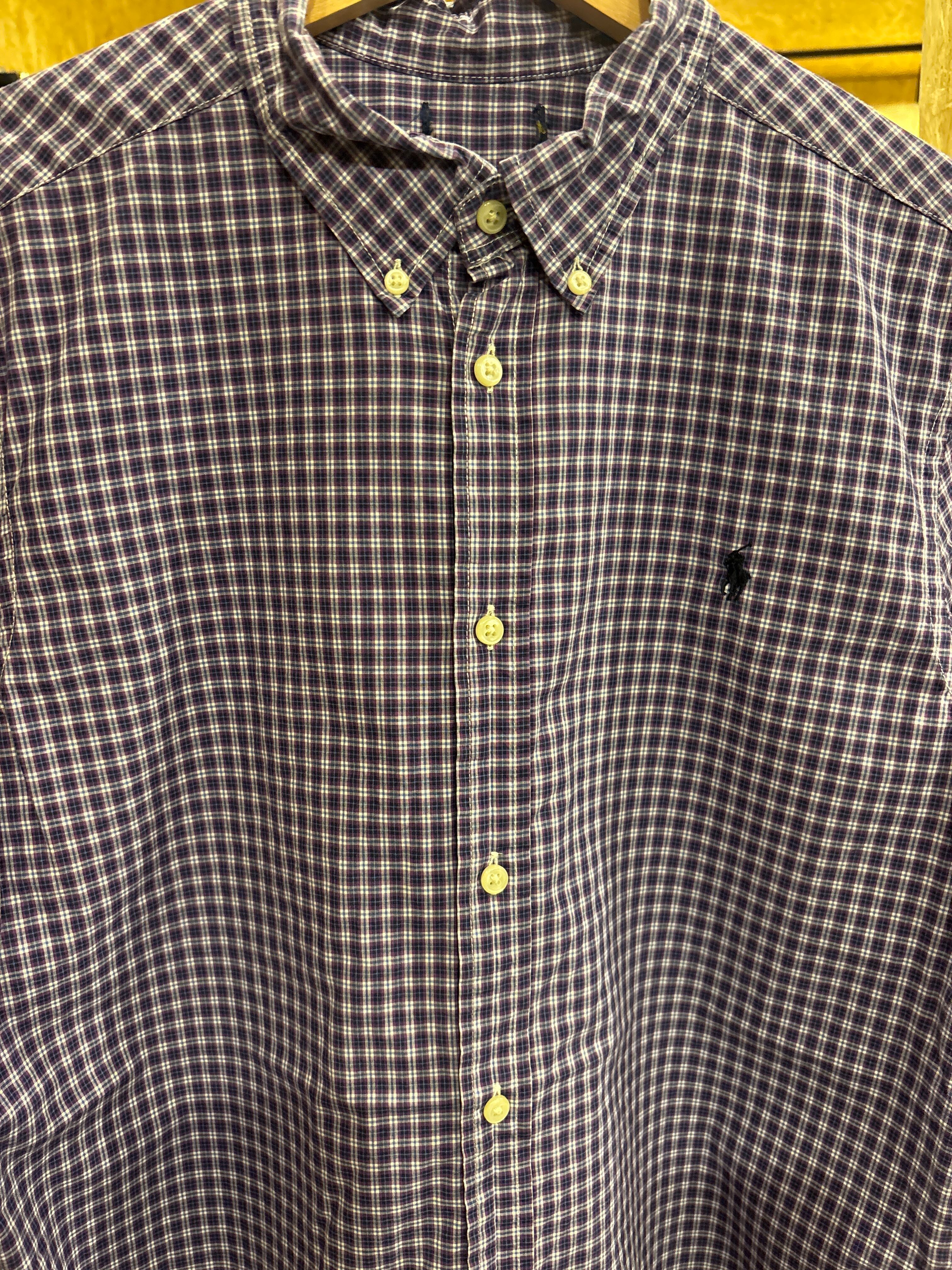 海野さん ラルフ紫チェックシャツ